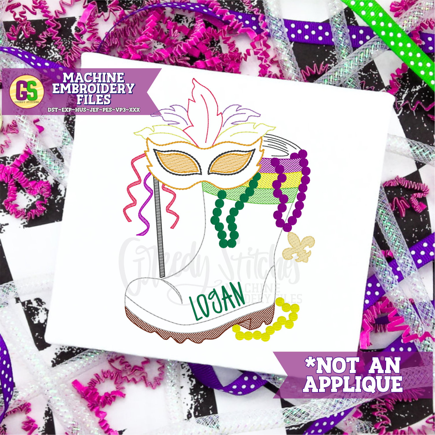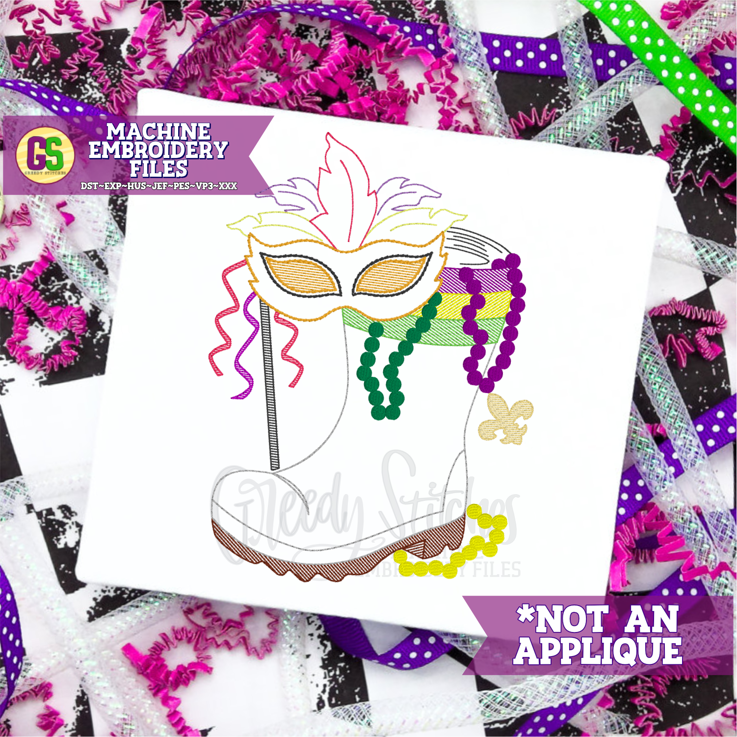 Mardi Gras Shrimp Boot Machine Embroidery Design - Mardi Gras Embroidery