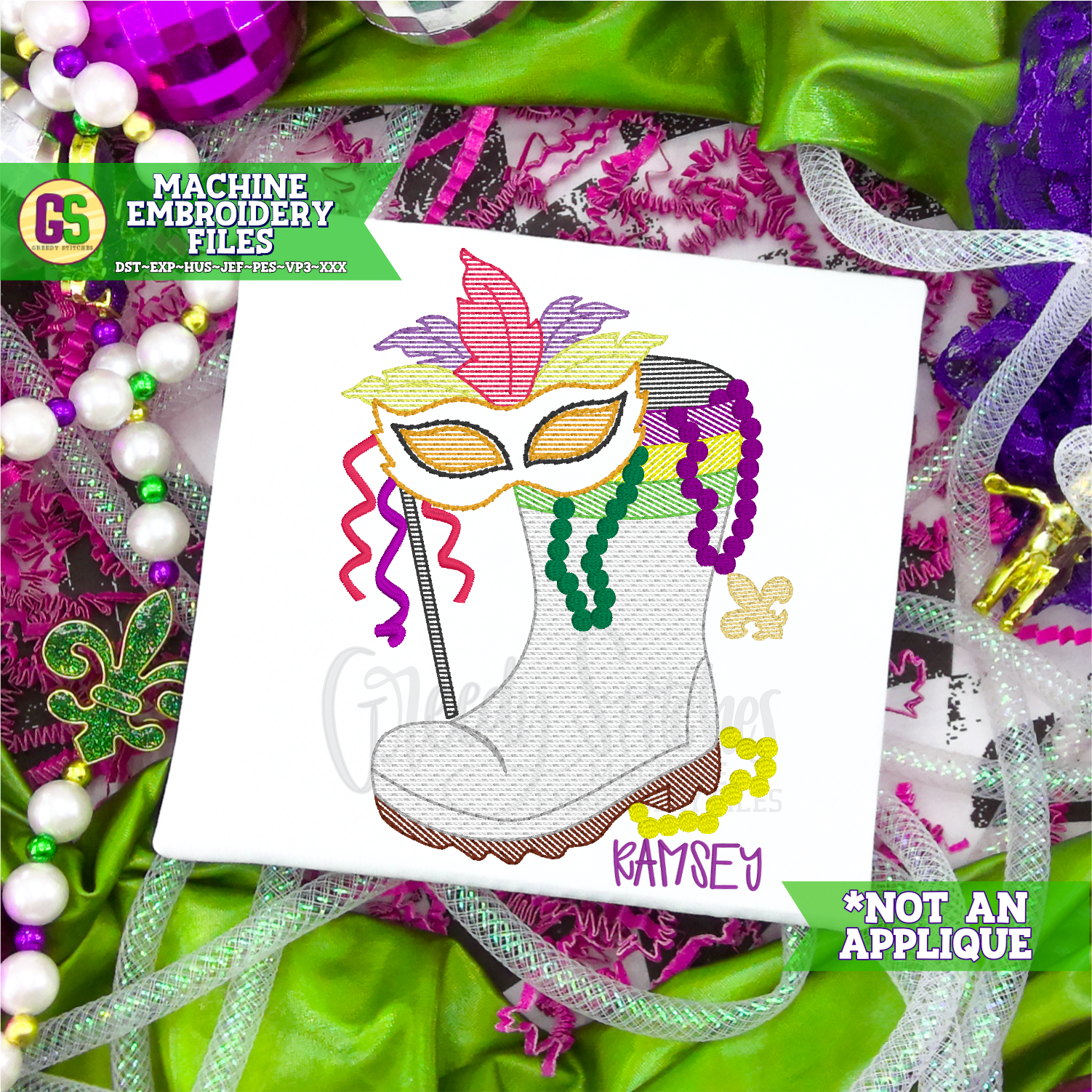 Mardi Gras Shrimp Boot Sketch Machine Embroidery Design - Mardi Gras Embroidery