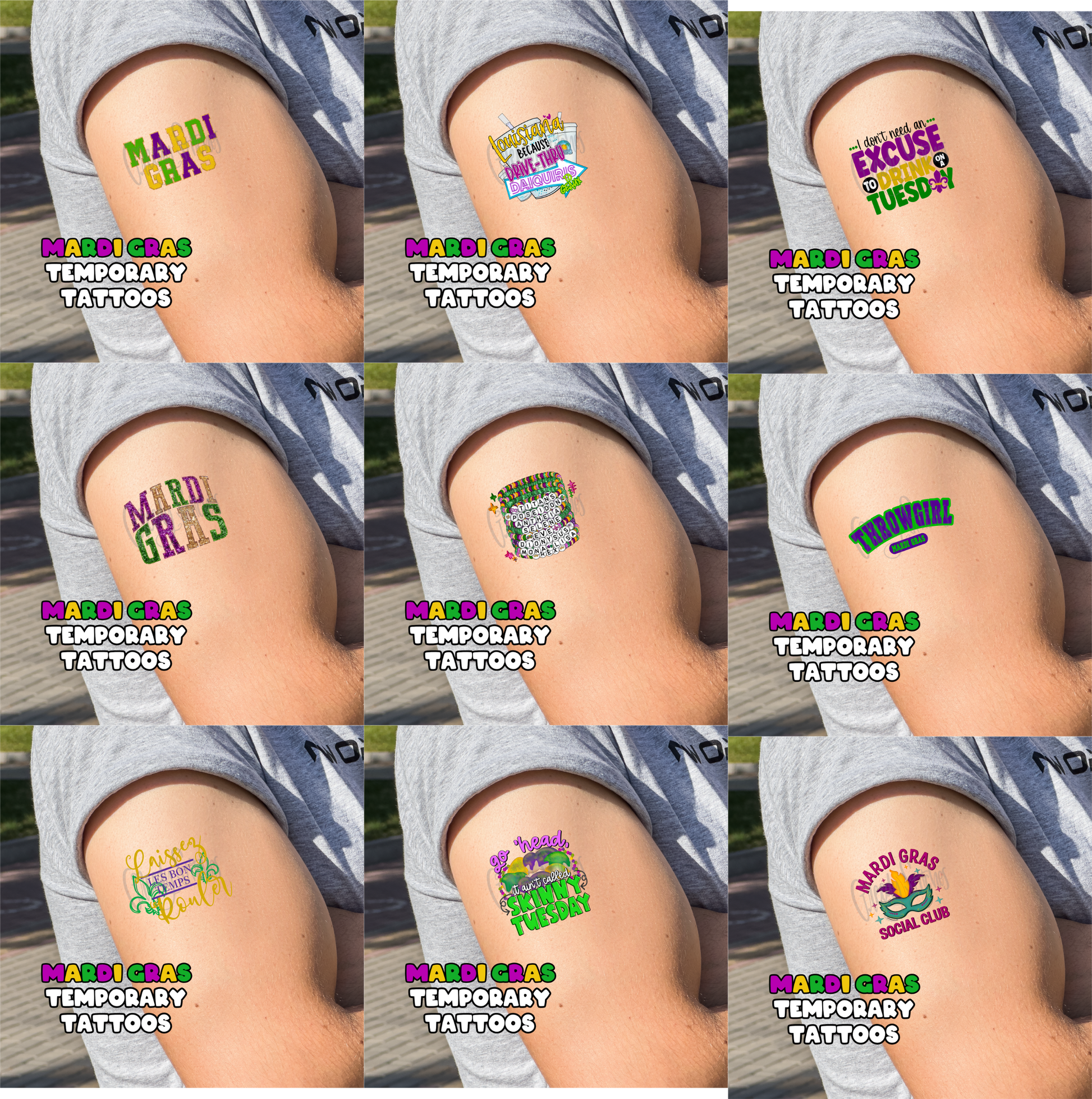 Mardi Gras Temporary Tattoos - Sheet 2