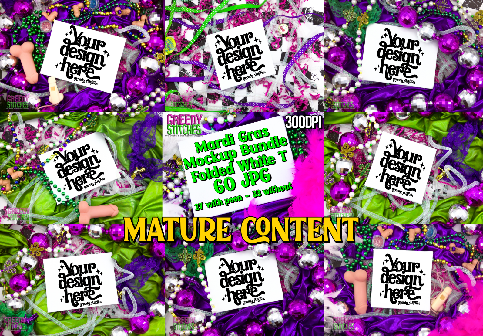 Mardi Gras White T Mockup Bundle - 60 JPG