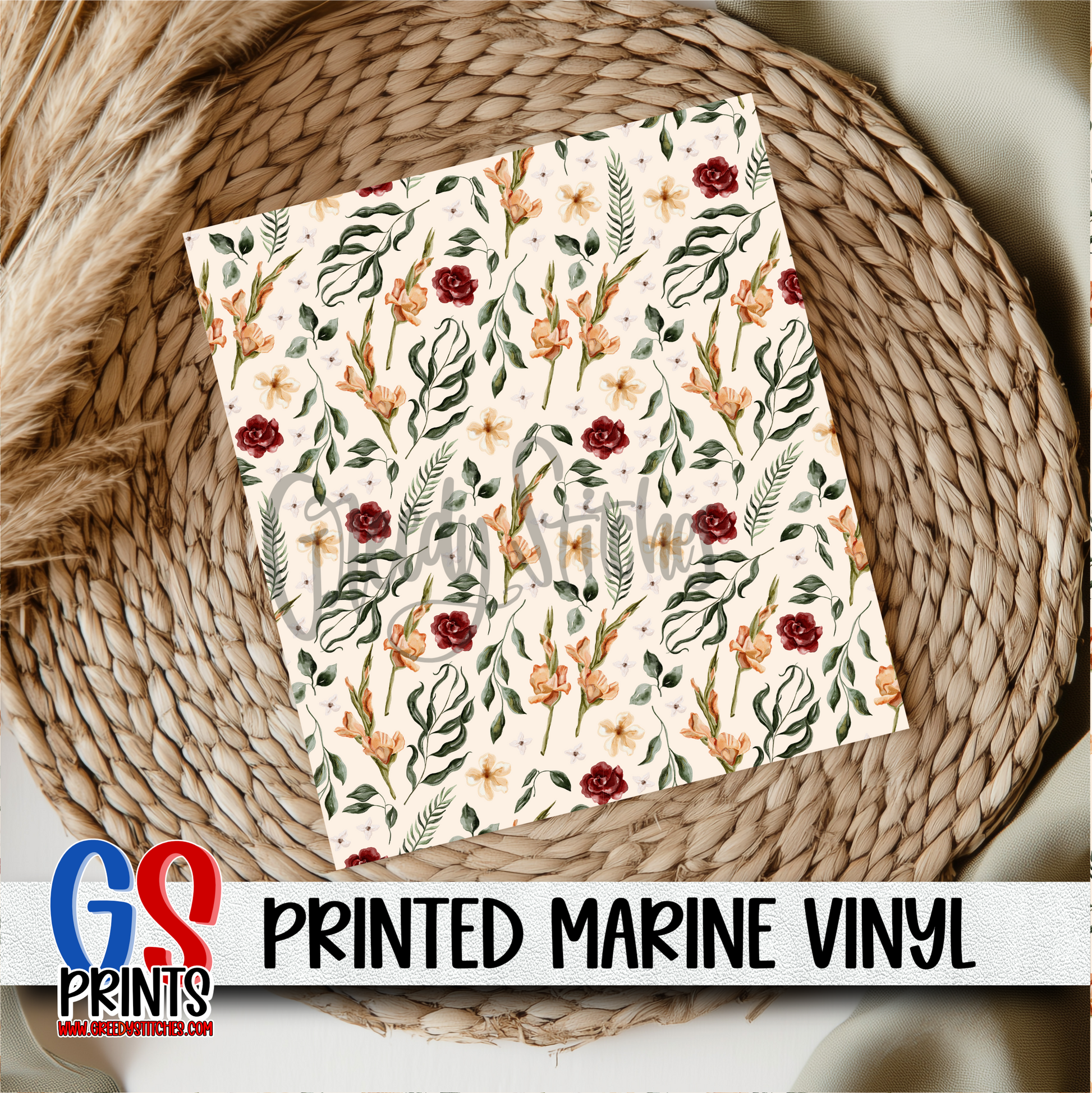 Maroon Flowers with Greenery Marine Vinyl
