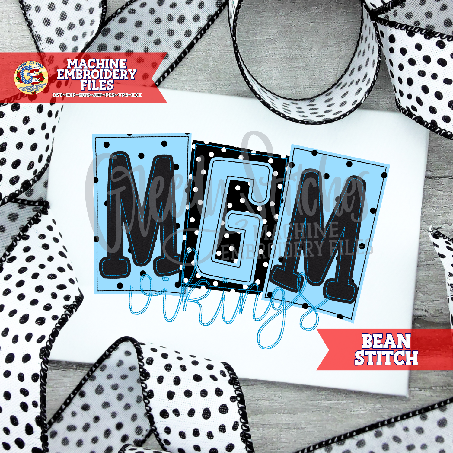 MGM Vikings Bean Stitch Applique Machine Embroidery Design