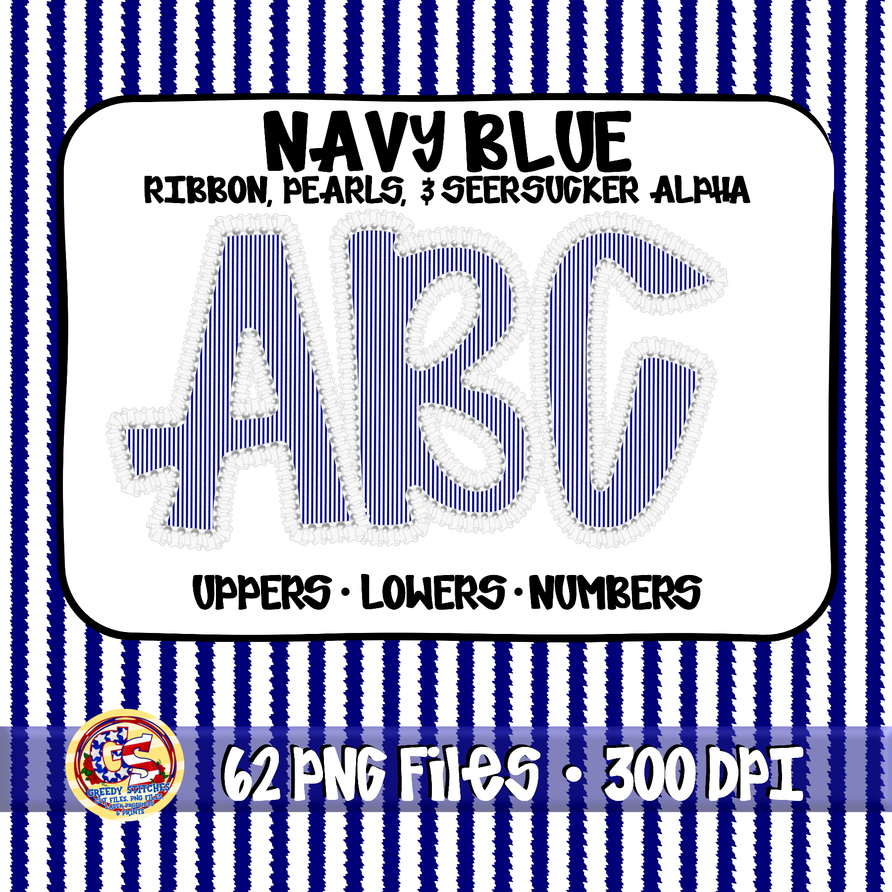 Navy Ruffles, Pearls, Seersucker Alpha PNG -Seersucker Alpha