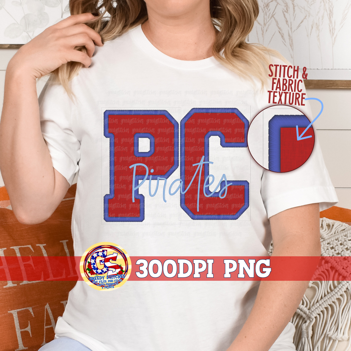 Pass Christian Pirates Faux Embroidered Varsity Applique PNG for Sublimation