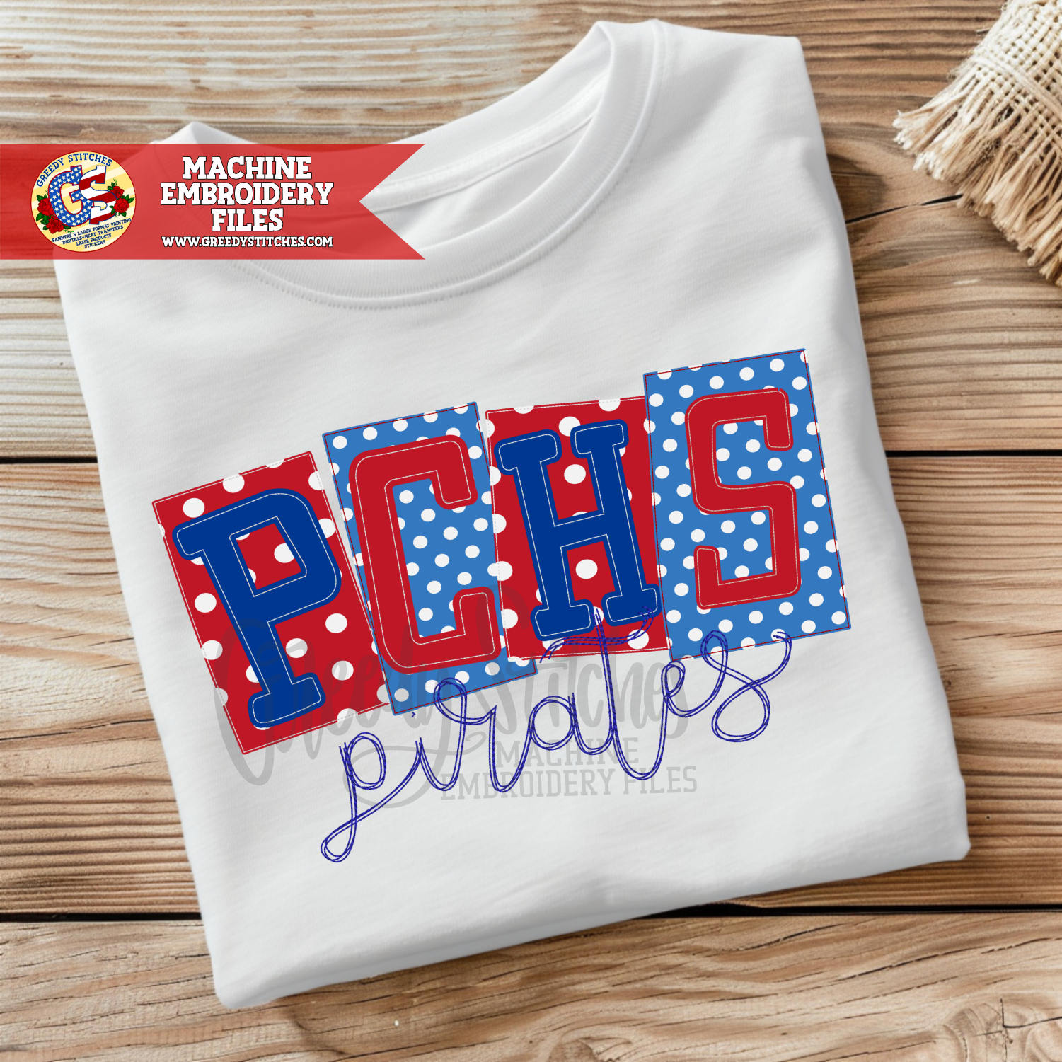 PCHS Pirates Bean Stitch Applique Machine Embroidery Design - Pass Christian High School Pirates