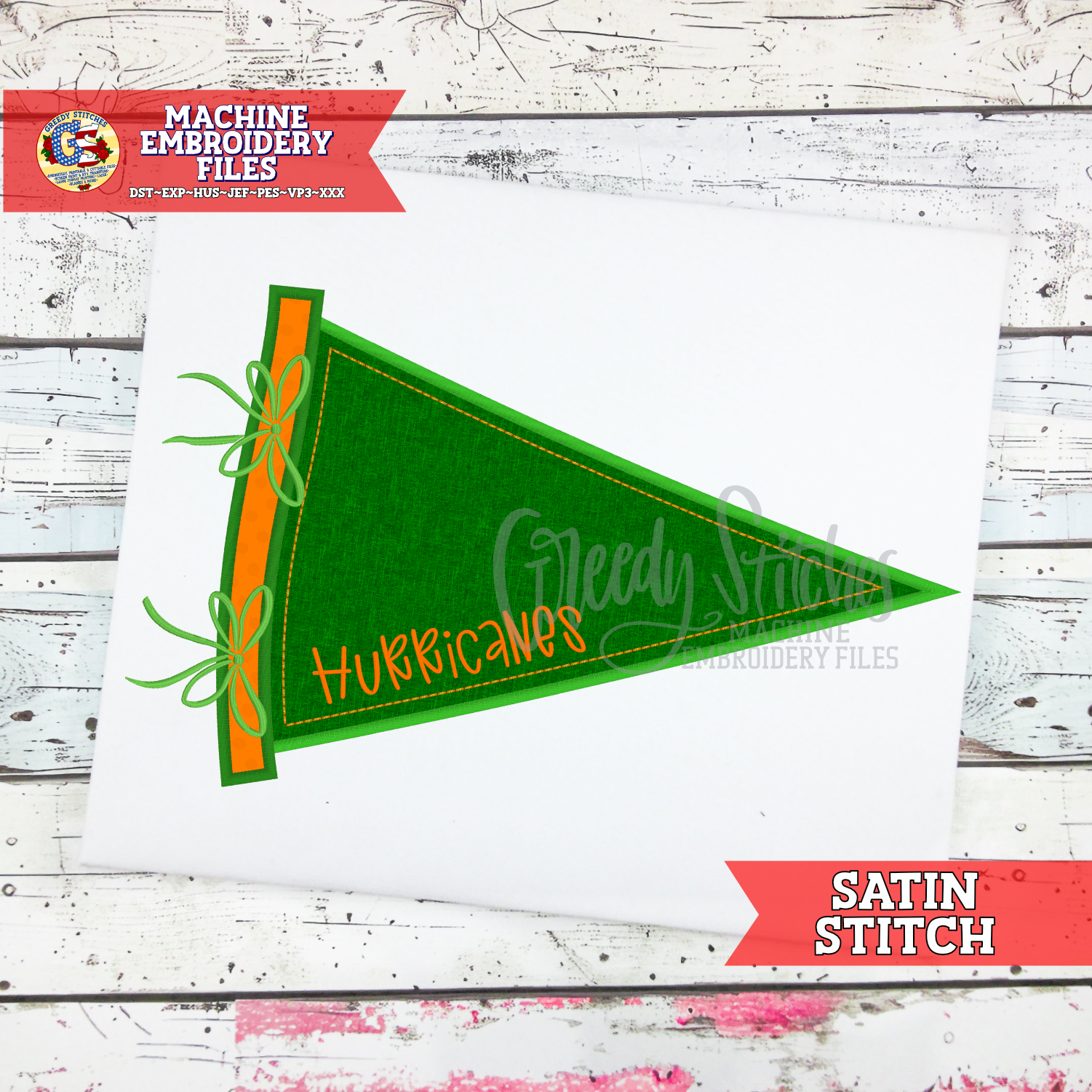Pennant Satin Stitch Applique Machine Embroidery Design