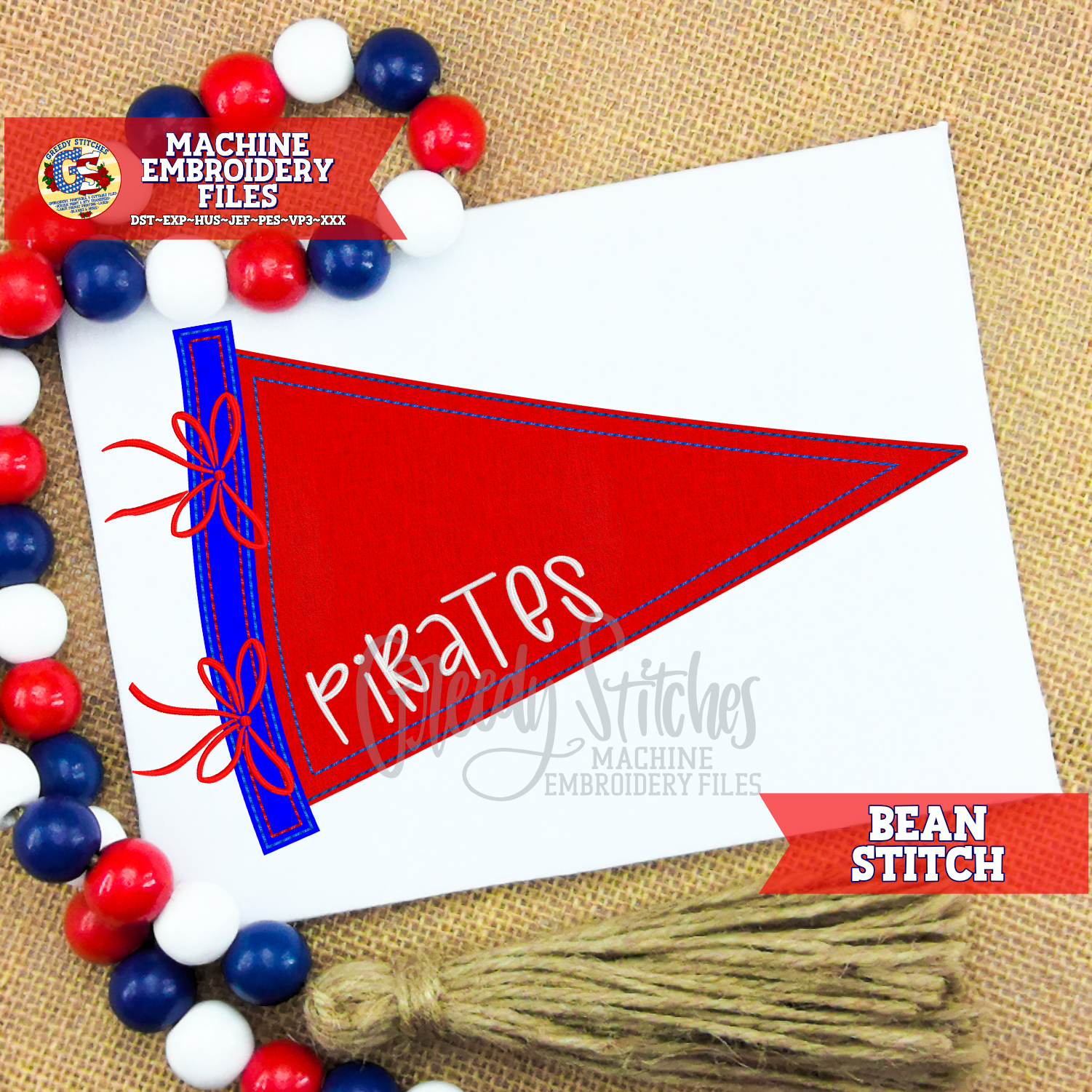 Pennant Bean Applique Machine Embroidery Design