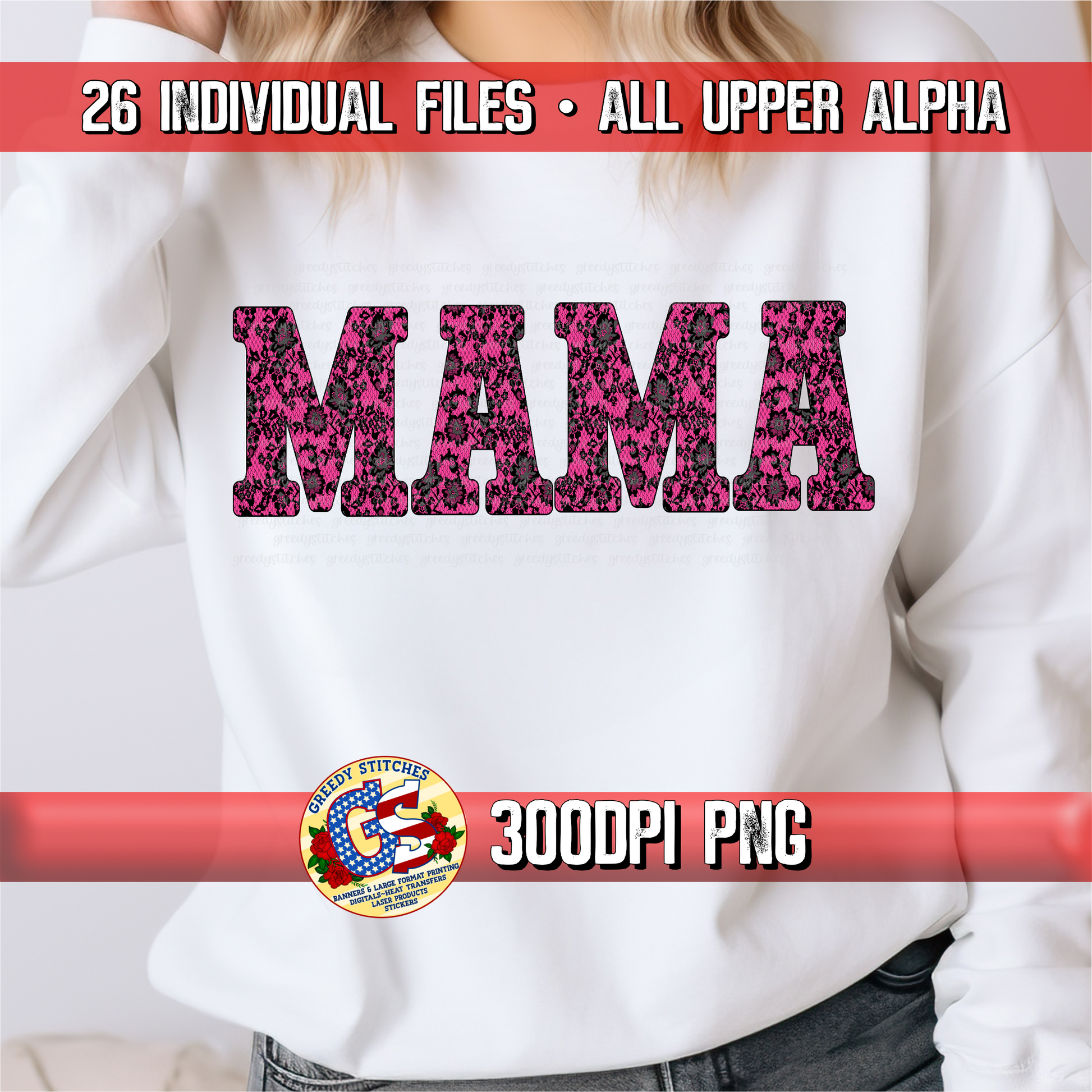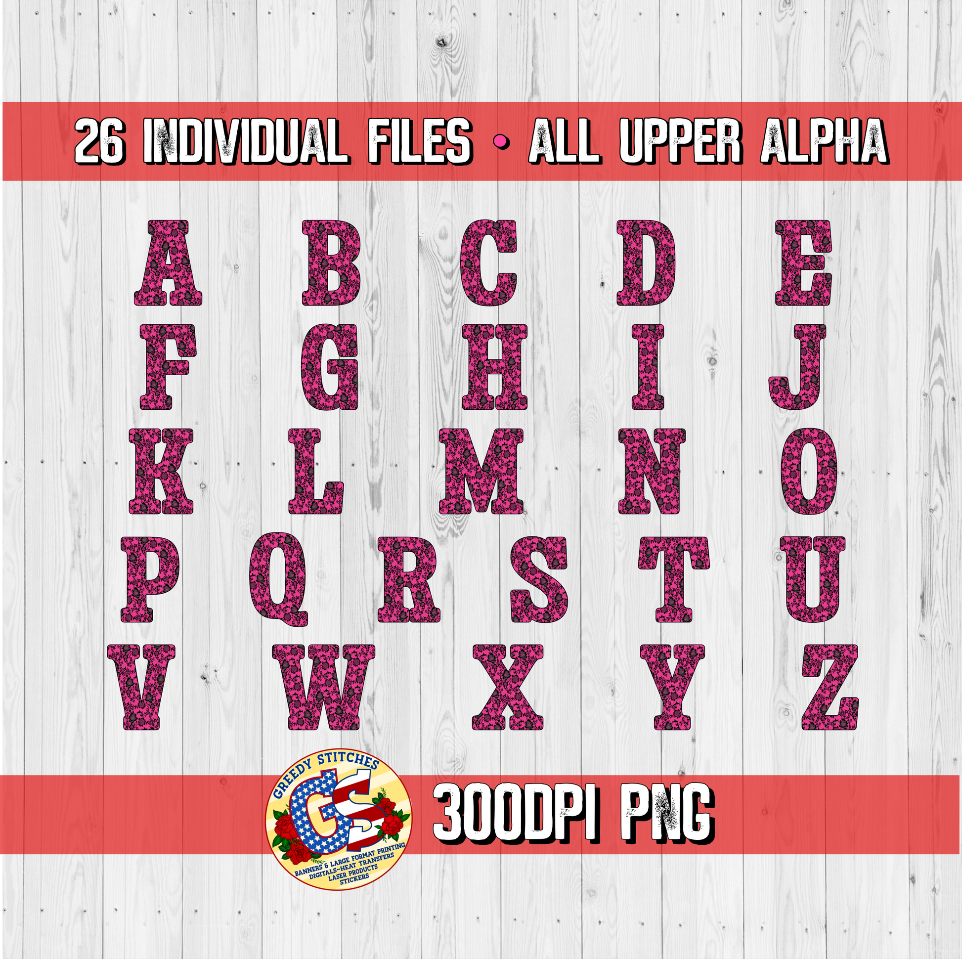 With this purchase, you'll receive 1 .zip that includes 36 .png files. Each letter has been saved in its own file at 300dpi and measures around 10" tall. These are very large files, so please be aware before downloading. There is a solid white behind the lace.
