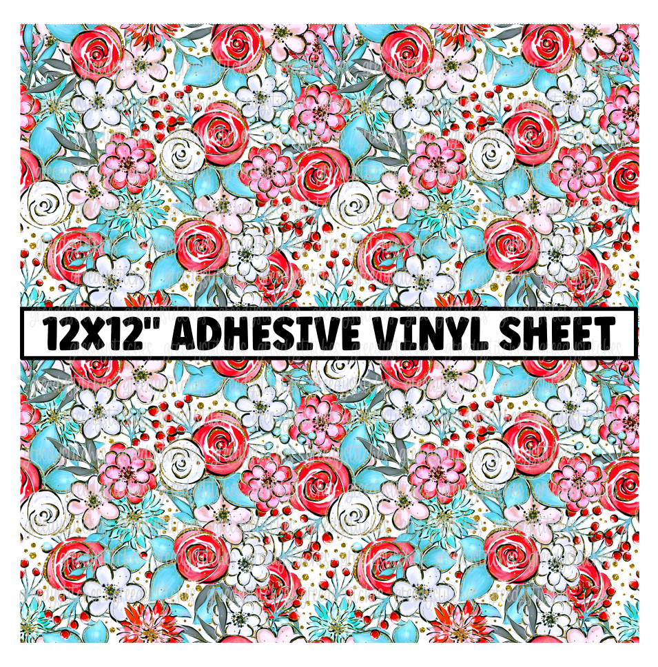 Pink and Light Blue Floral Matte Adhesive Vinyl