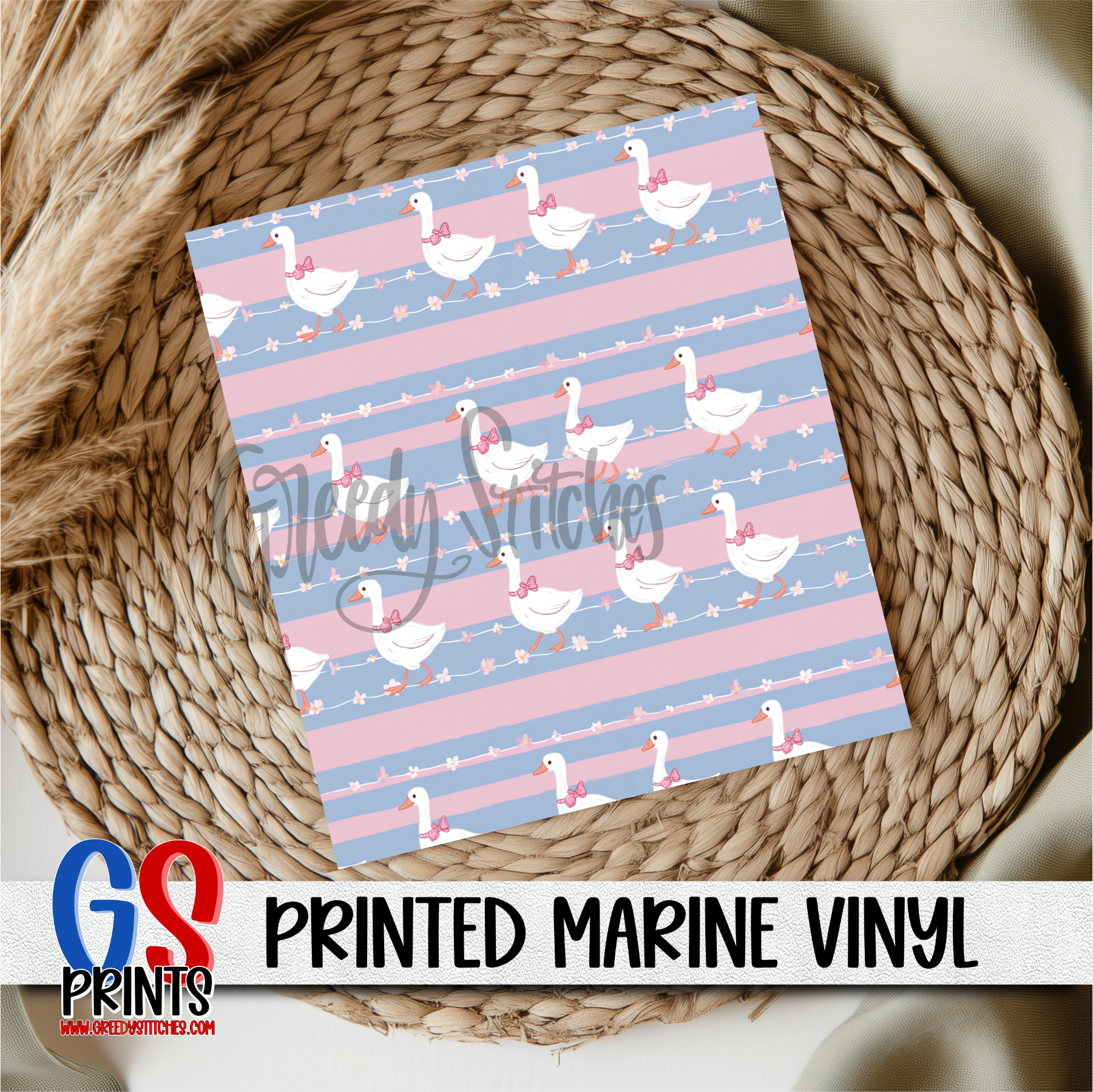 Pink Blue Striped Cottage Goose Marine Vinyl