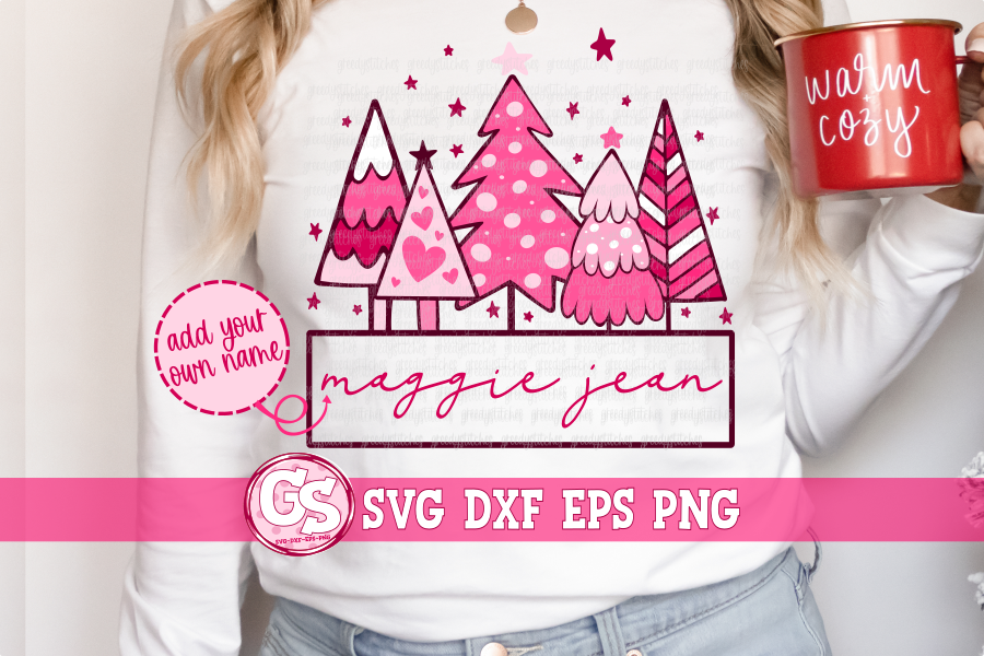 Pink Christmas Trees with Name Box SVG DXF EPS PNG