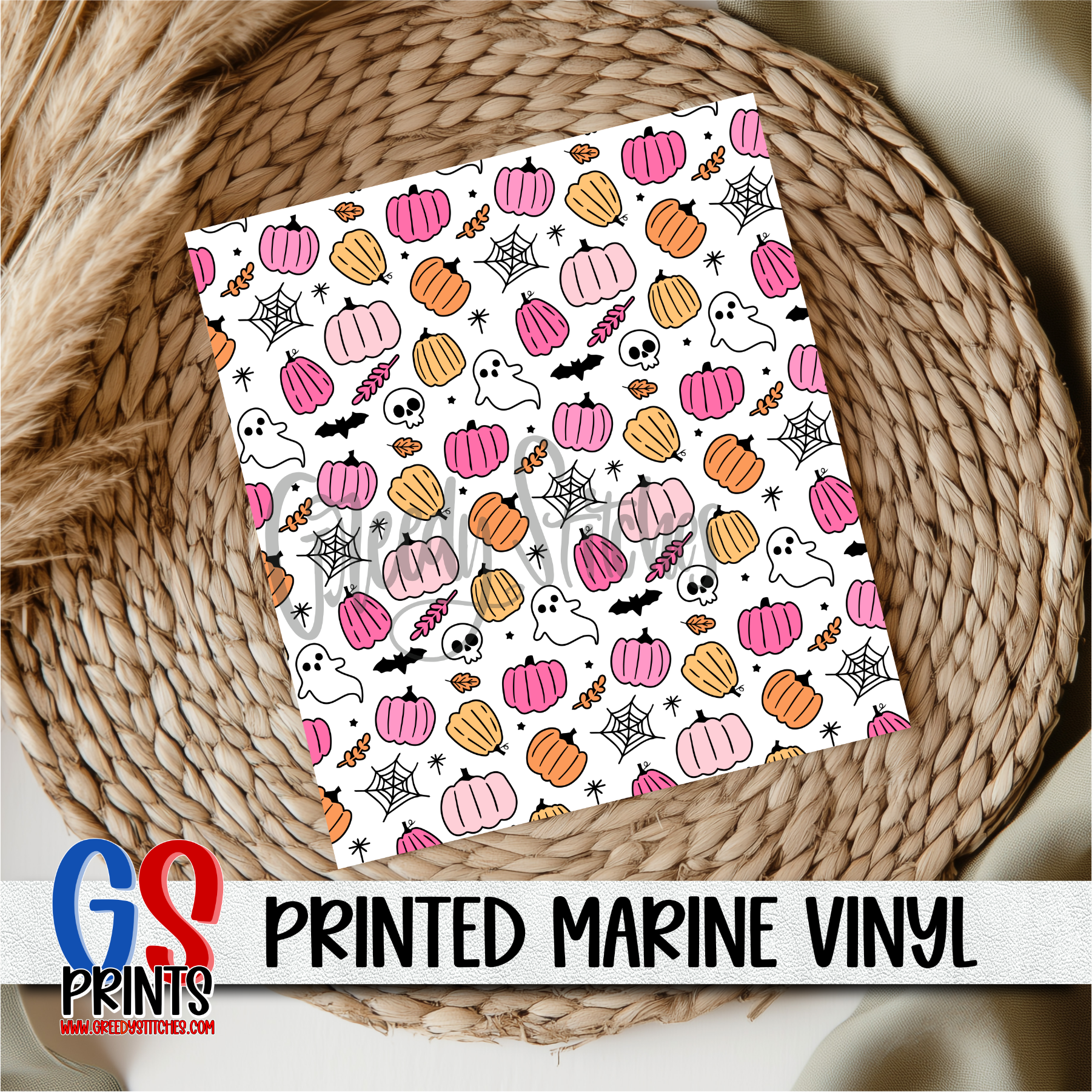 Pink Orange Halloween Ghosts Printed Marine Vinyl