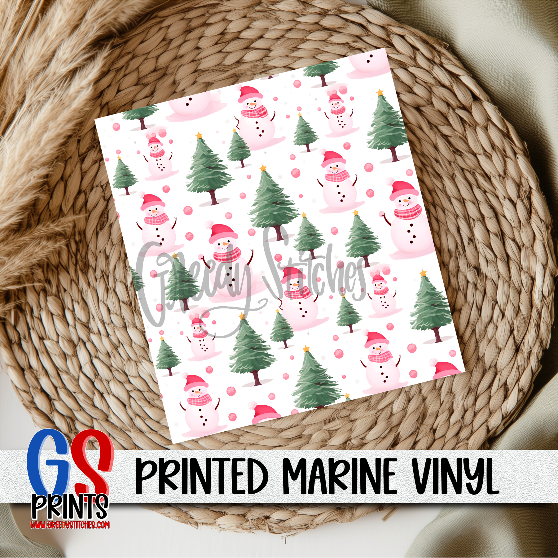 Pink Snowman Pine Trees Marine Vinyl