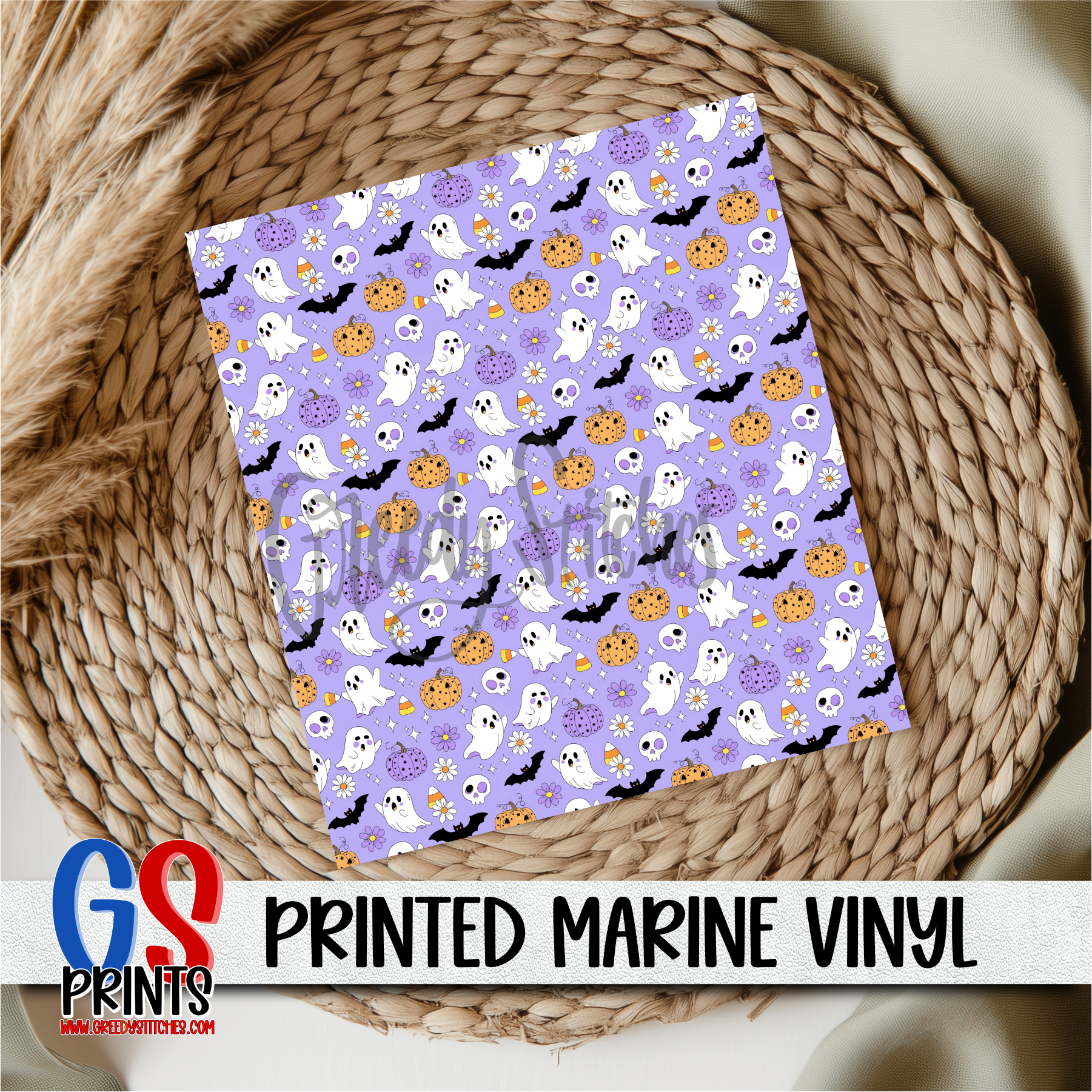 Purple Ghosts Bats and Pumpkins Printed Marine Vinyl