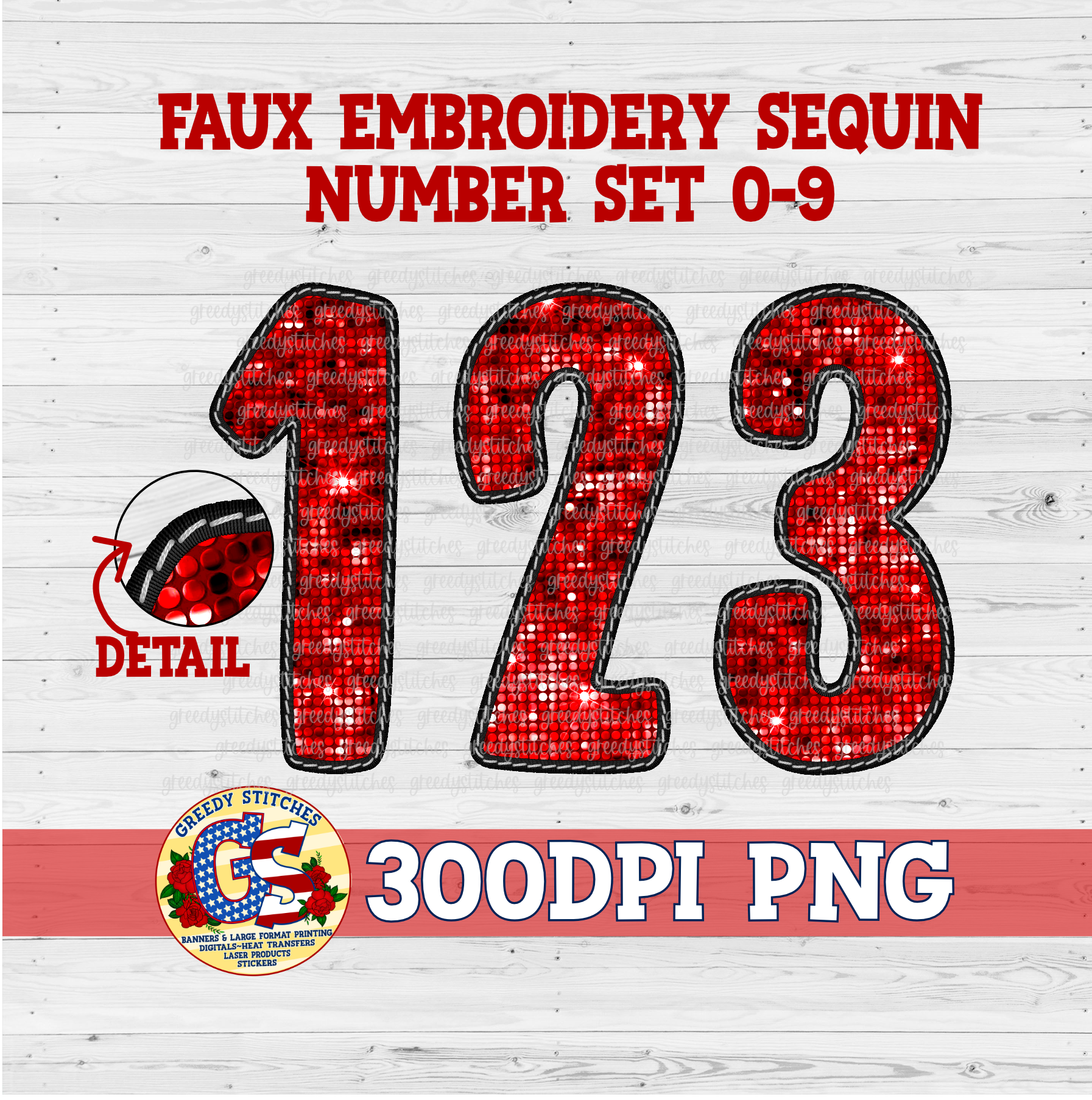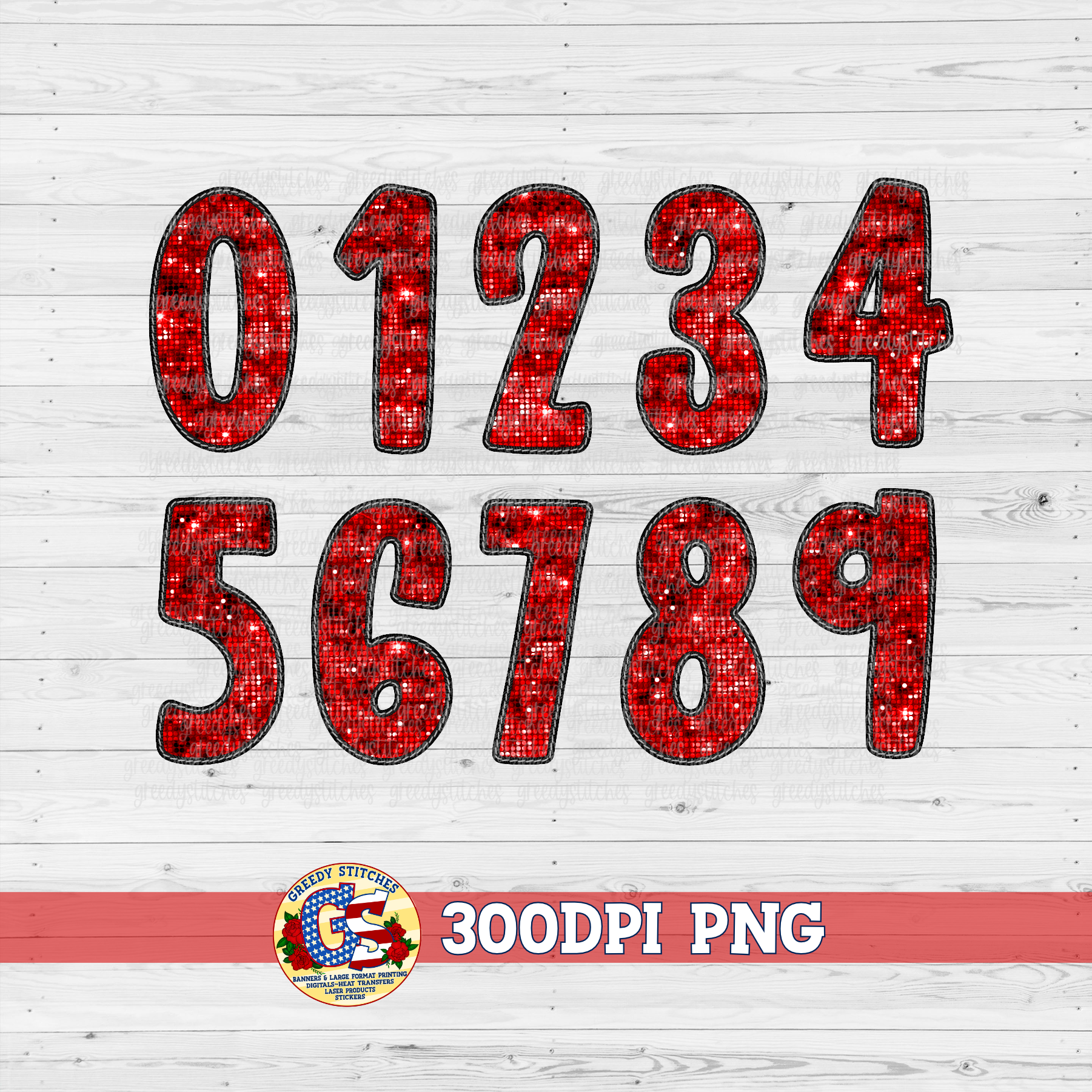 Red Faux Embroidery Sequin Number Set Alpha PNG Set