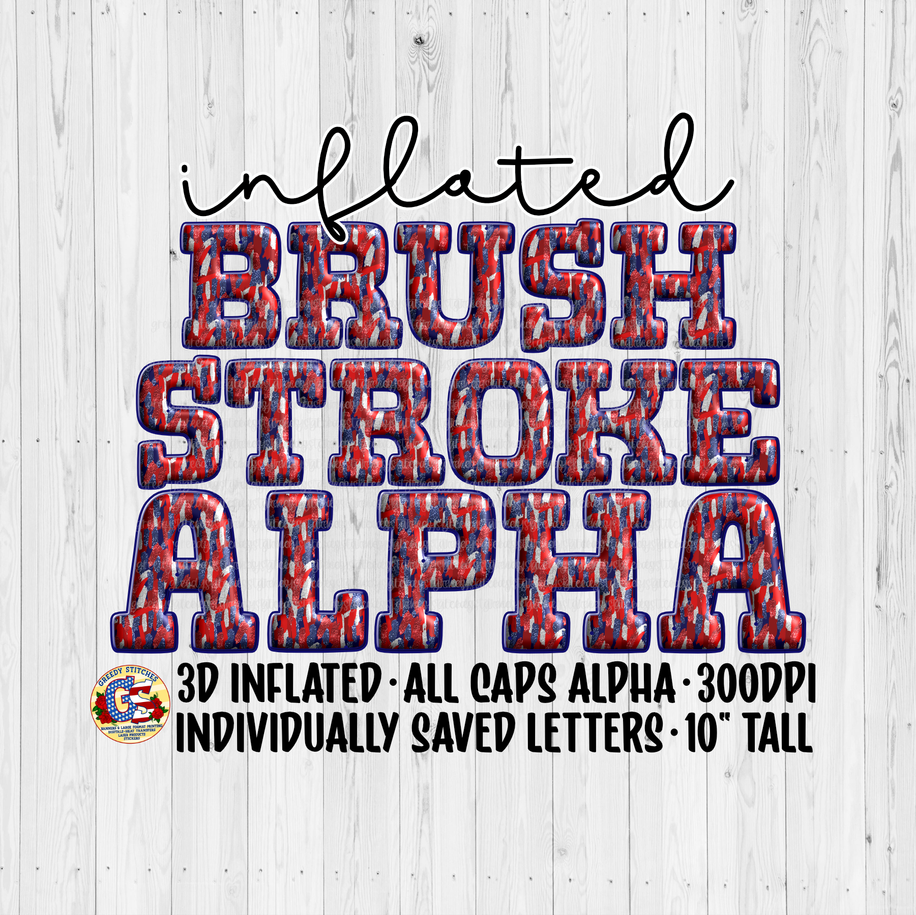 Red White Navy Glitter 3D Inflated Alpha PNG
