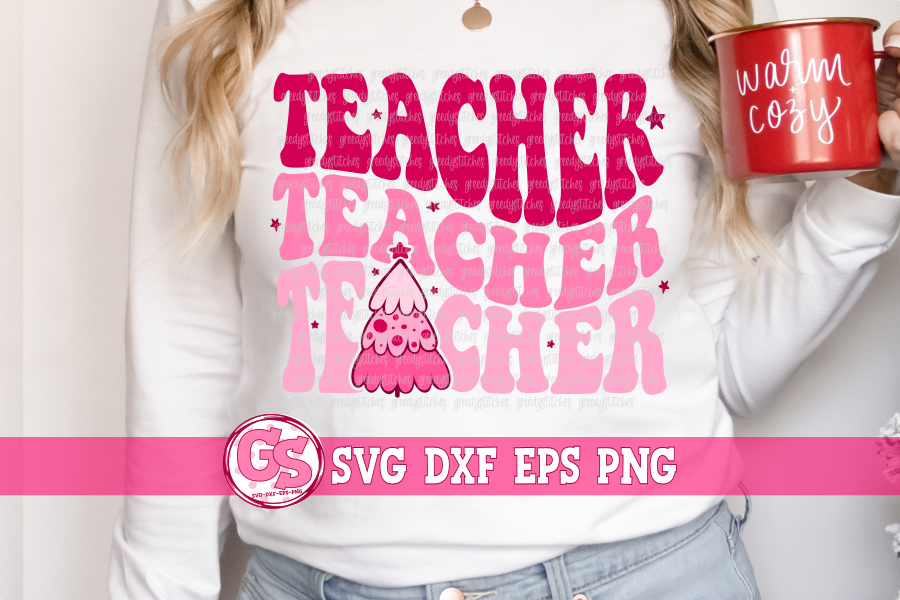 Retro Groovy Teacher Teacher Teacher Pink Christmas Tree SVG DXF EPS PNG