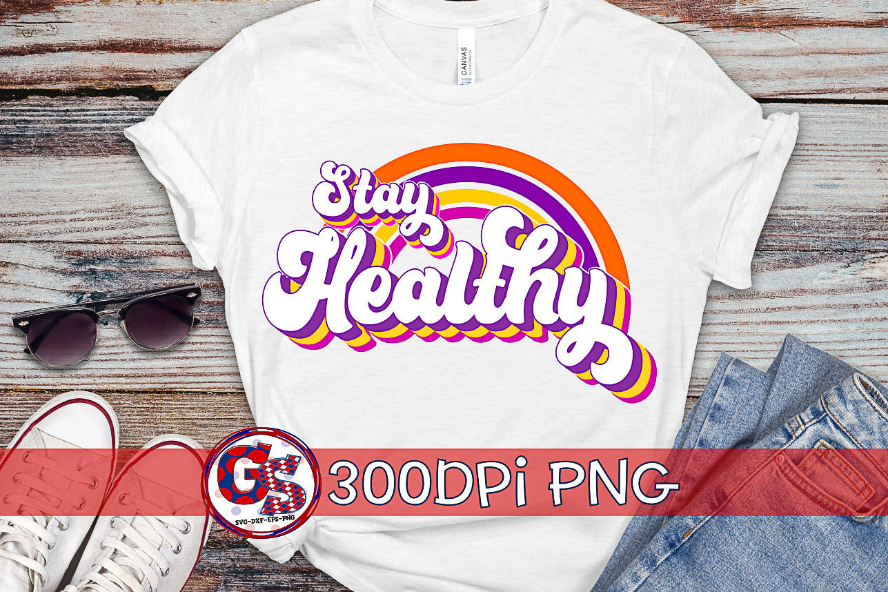 Retro Stay Healthy Rainbow PNG for Sublimation