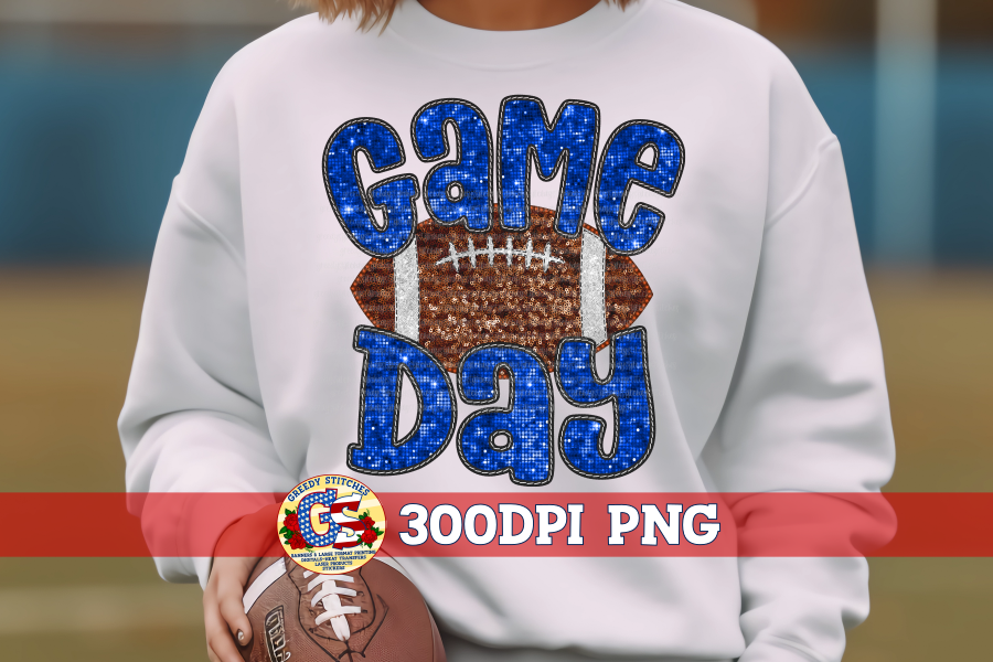 Royal Game Day Football Faux Embroidery Sequins PNG