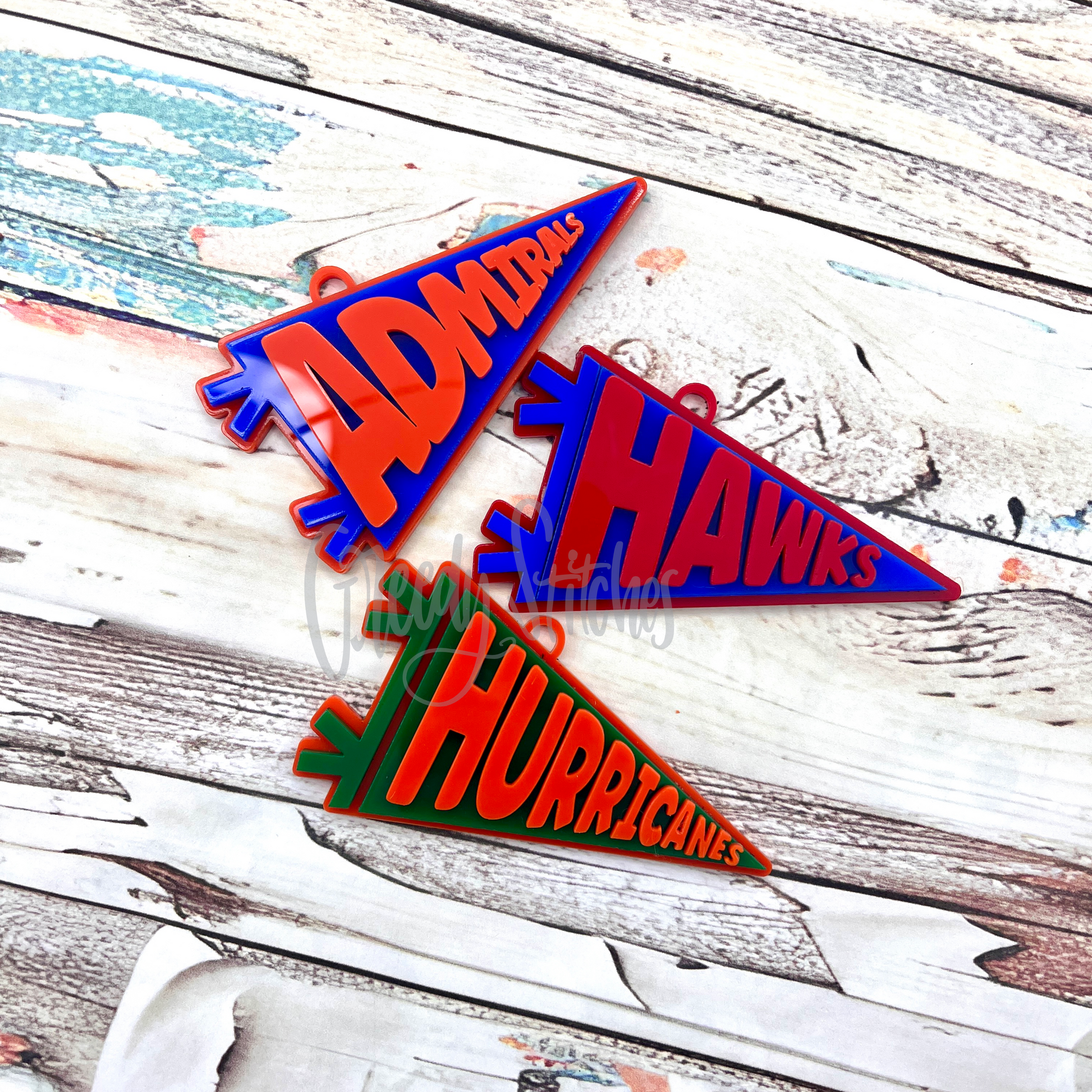 Please add your mascot/name to the personalization section and use the drop down menus to select your two colors. Your information will be cut exactly as you provide. You are responsible for inputting the correct information.