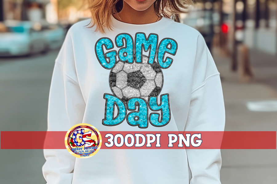 Soccer Game Day Columbia Blue Faux Embroidery Sequins PNG