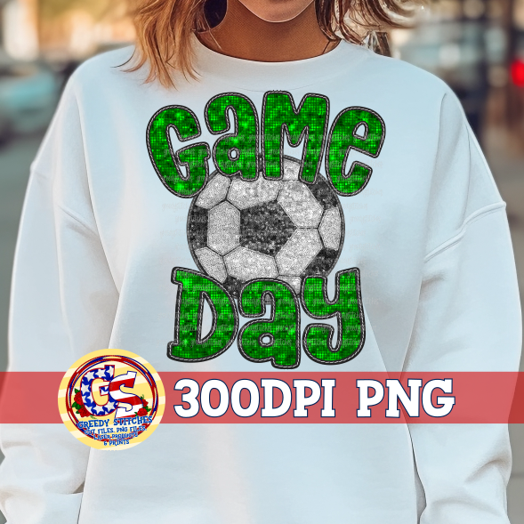 Soccer Game Day Green Faux Embroidery Sequins PNG