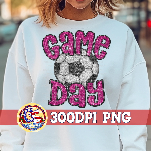 Soccer Game Day Pink Faux Embroidery Sequins PNG