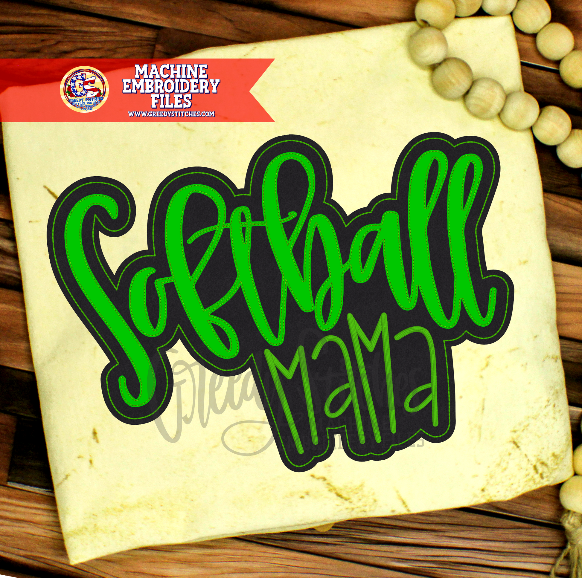 Softball Mama Double Applique Machine Embroidery Design