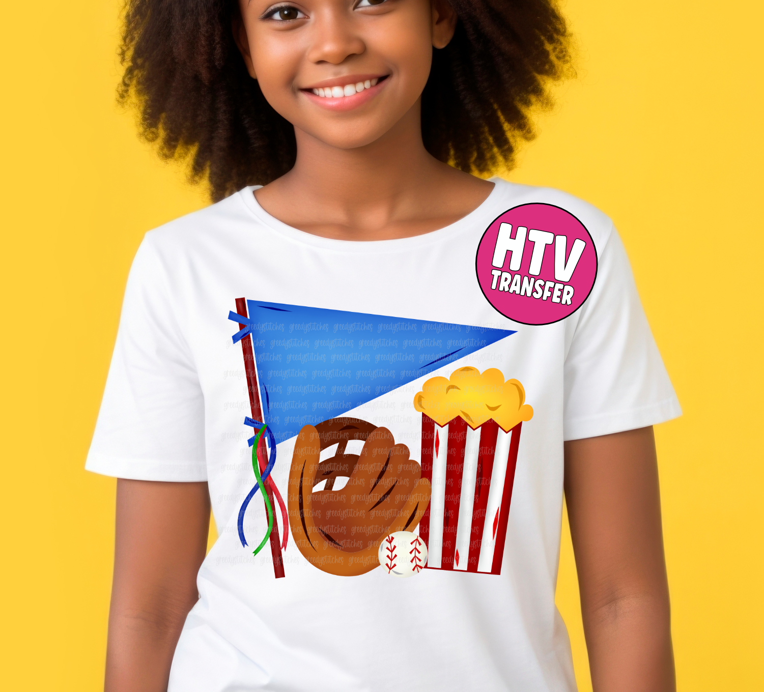 Baseball Pennant Glove Popcorn HTV Transfer---YOUTH
