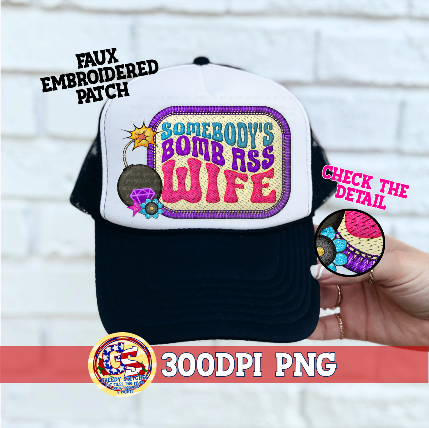Somebody's Bomb Ass Wife PNG - Faux Embroidered Hat Patch