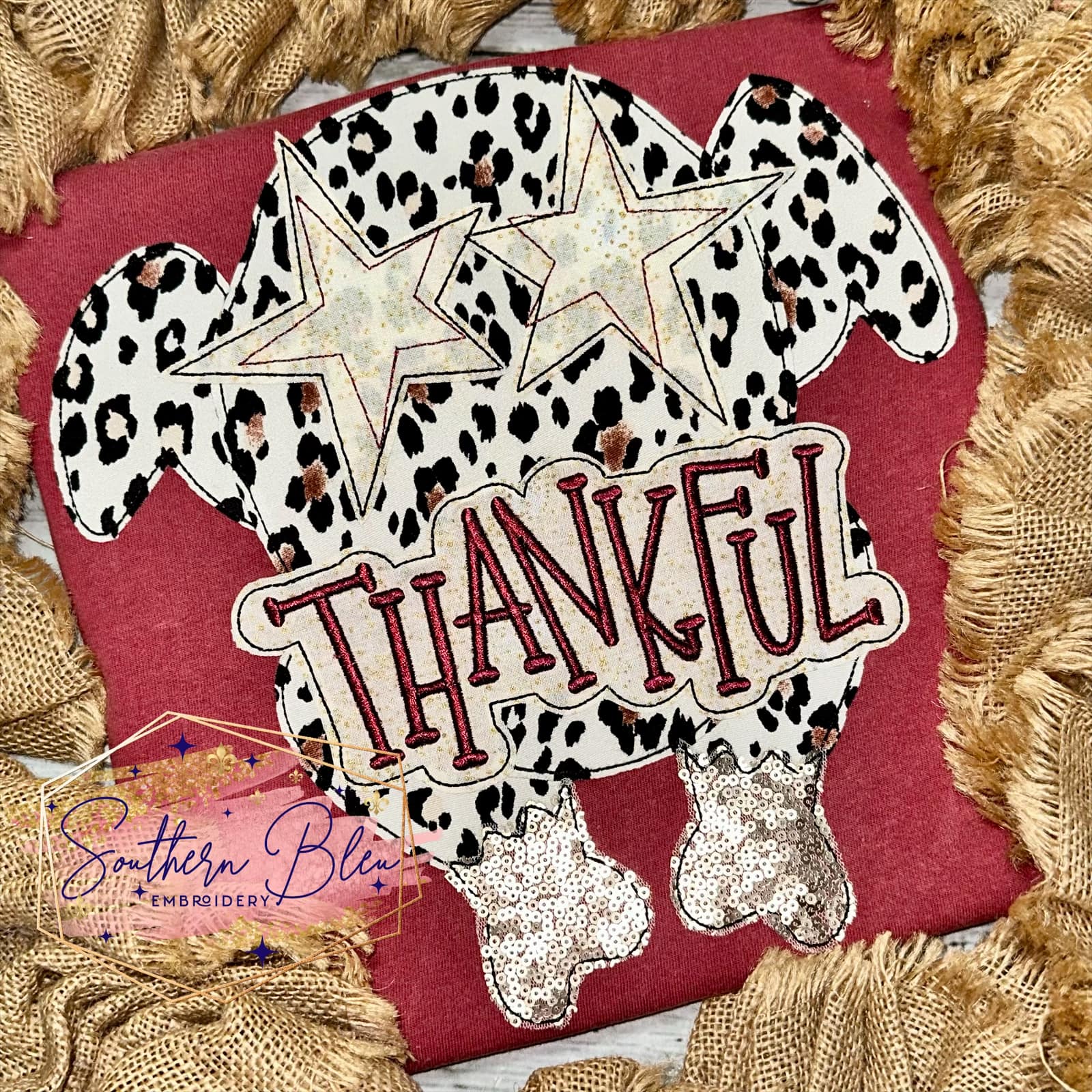 This is a bean stitch applique machine embroidery design. The lettering is a satin stitch and has been digitized to use with puff foam.