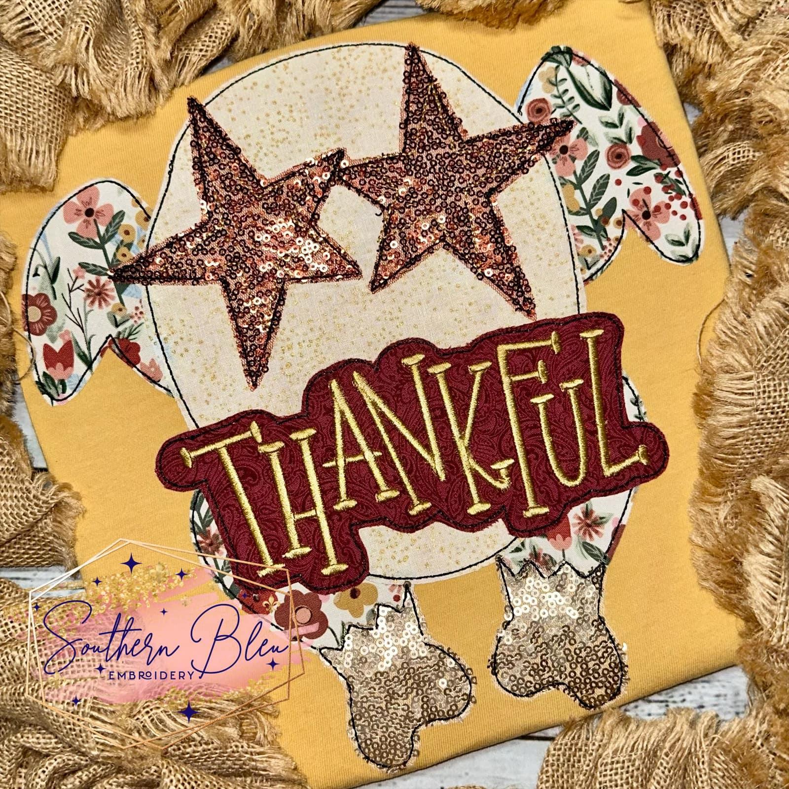 Thankful Turkey Bean Stitch Applique Machine Embroidery Design