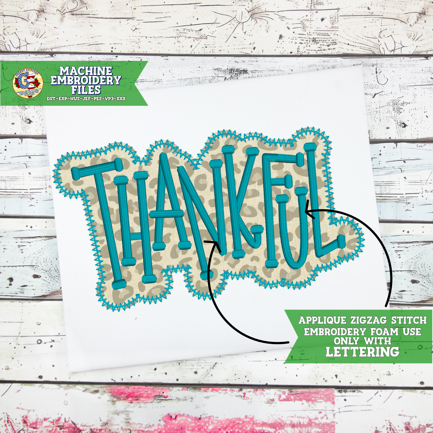 Thankful Zigzag Stitch Applique Machine Embroidery Design - FOR USE WITH PUFFY FOAM