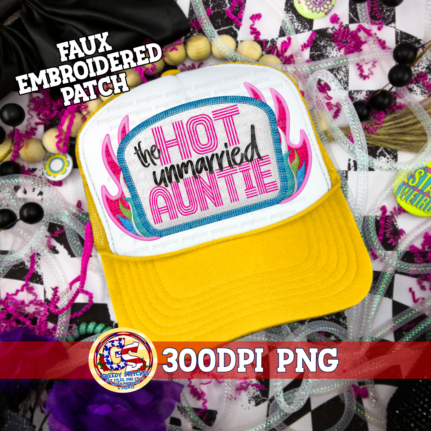 The Hot Unmarried Auntie PNG - Faux Embroidered Hat Patch