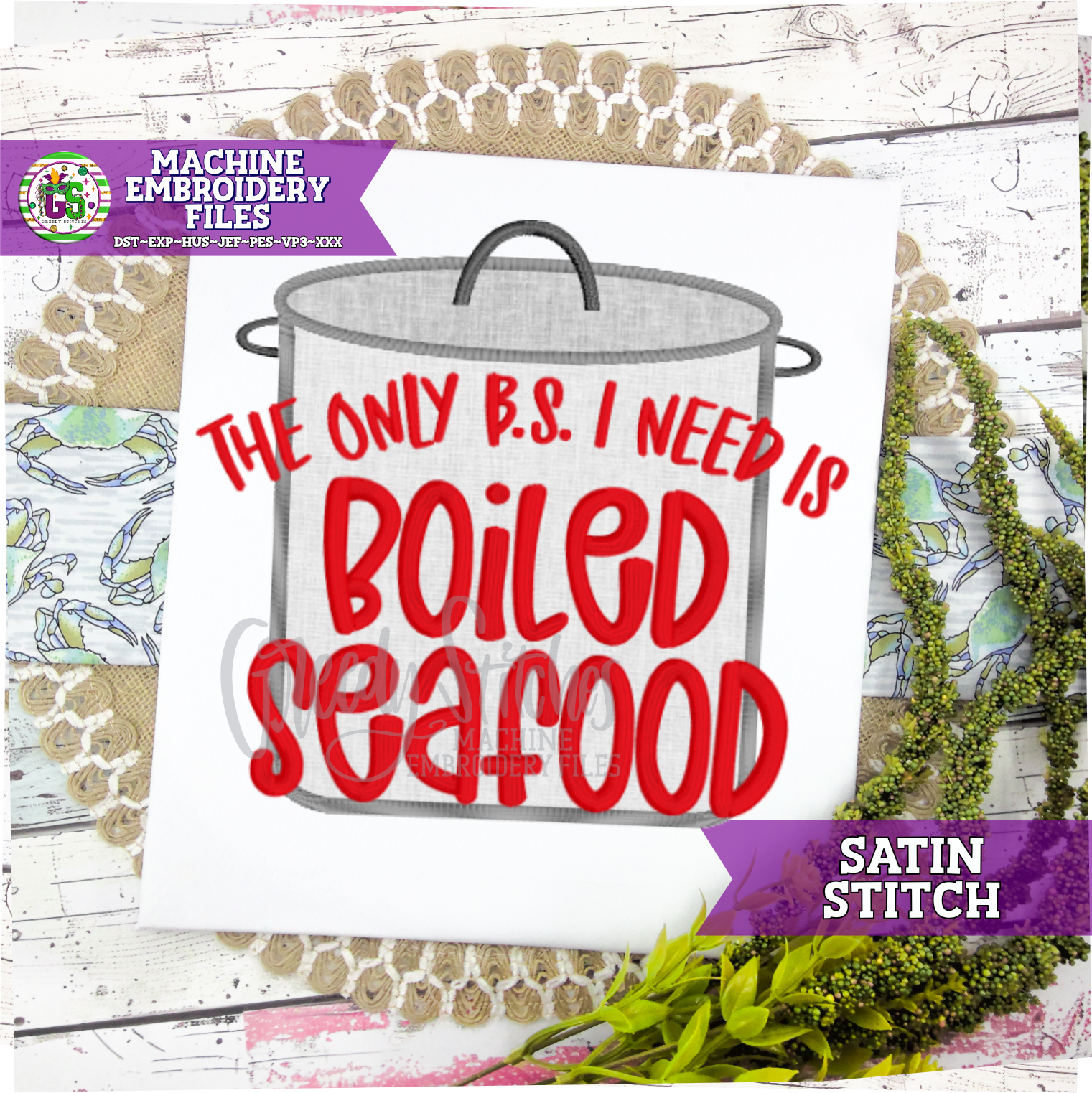 The Only BS I Need is Boiled Crawfish Satin Stitch Applique Embroidery Design