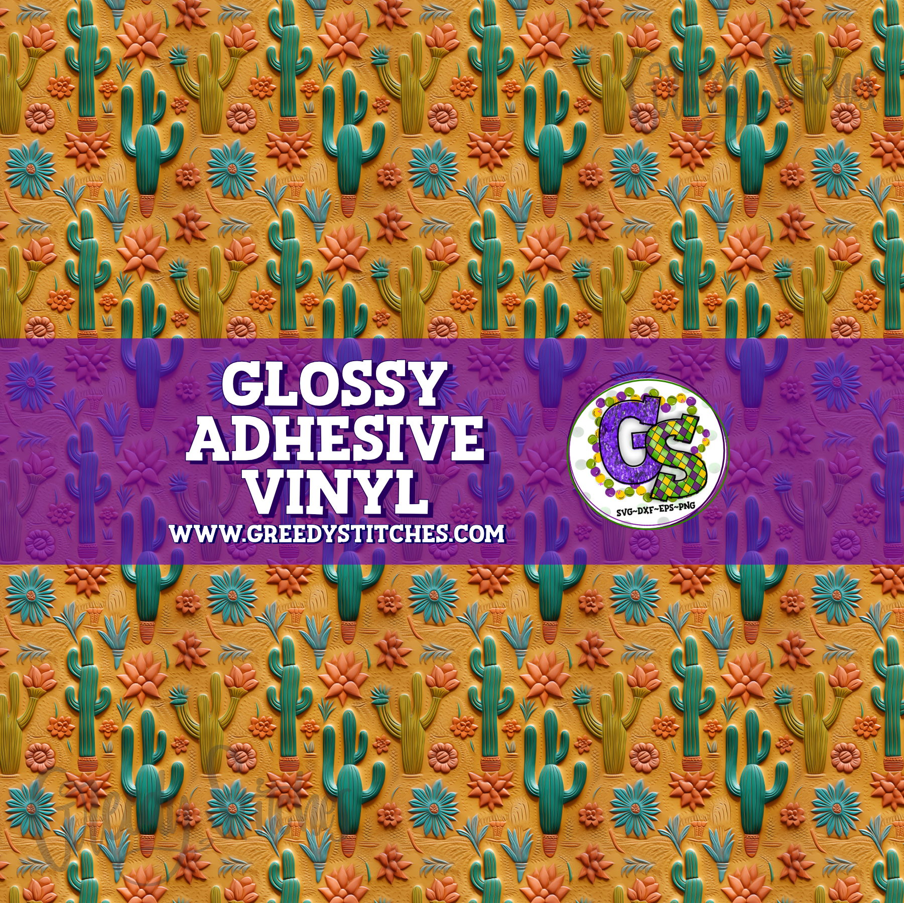 Turquoise & Coral Floral Cactus Glossy Adhesive Vinyl