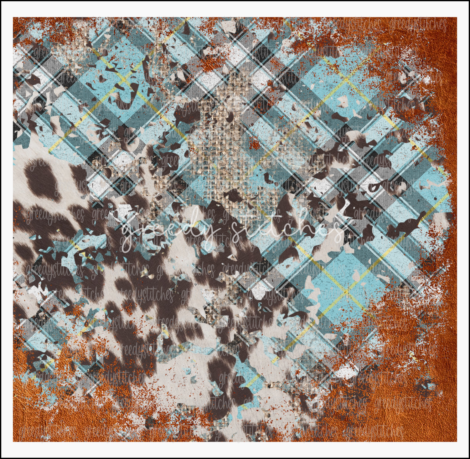 Turquoise Plaid & Cowhide Matte Adhesive Vinyl