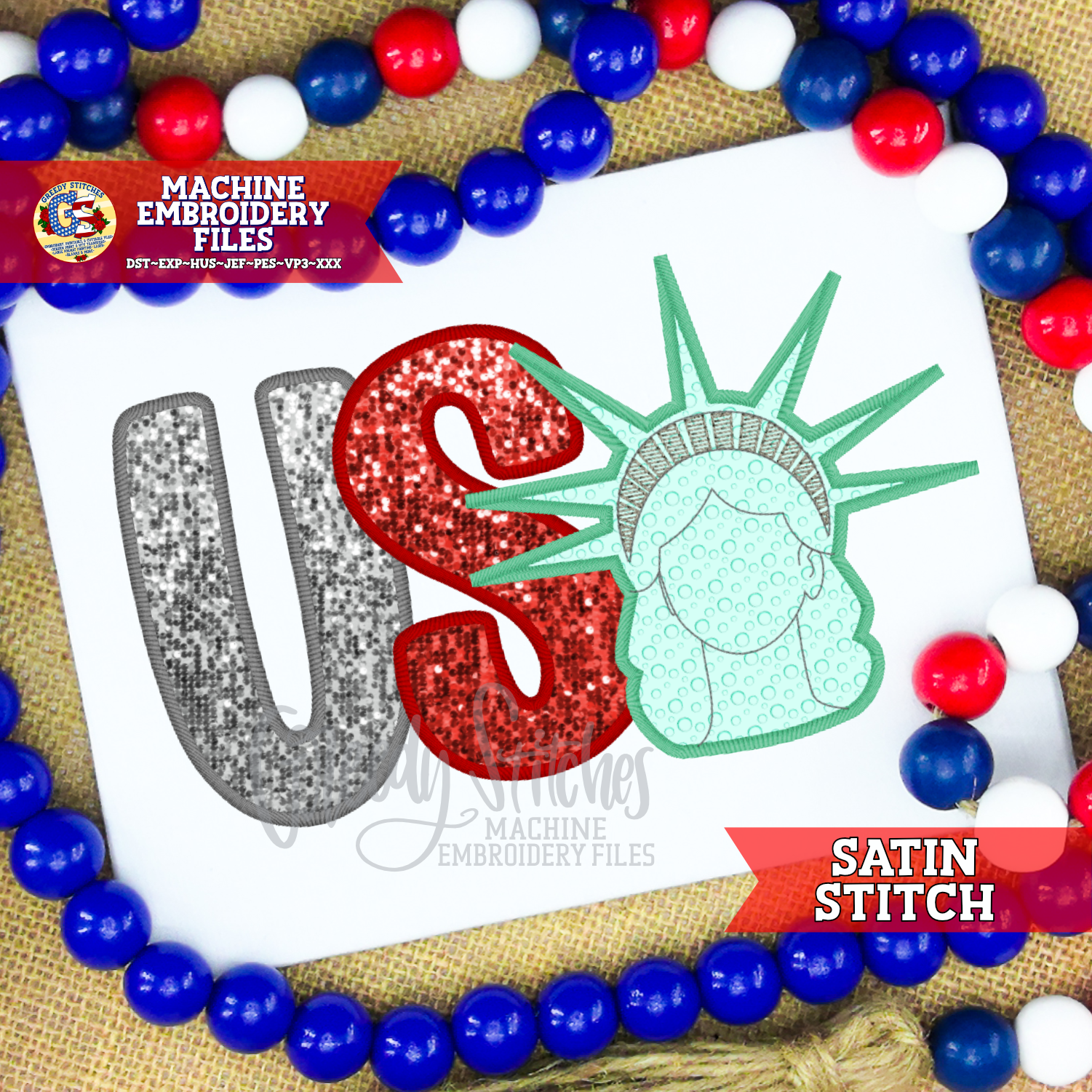 USA Lady Liberty Satin Stitch Machine Embroidery Design