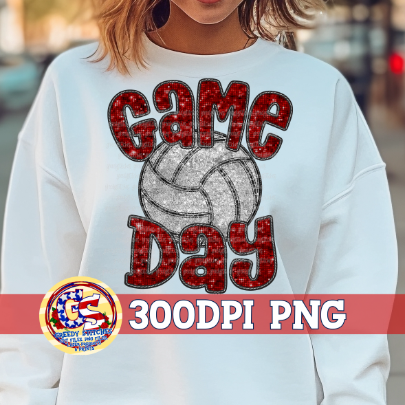 Volleyball Game Day Maroon Faux Embroidery Sequins PNG