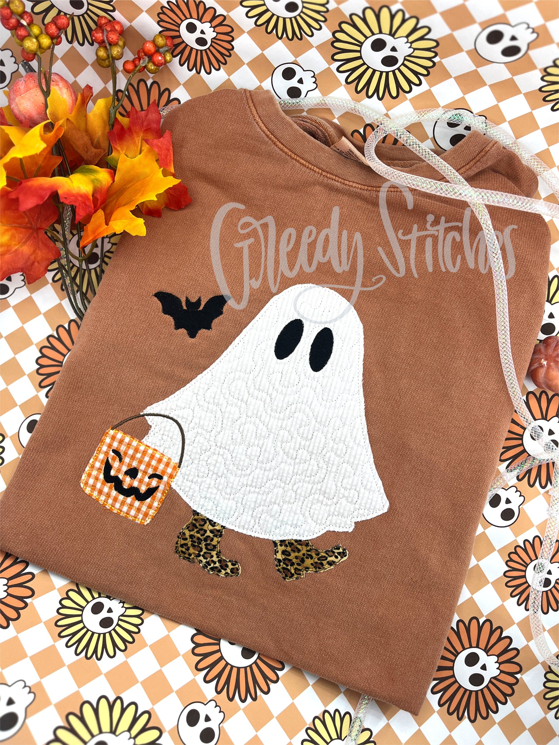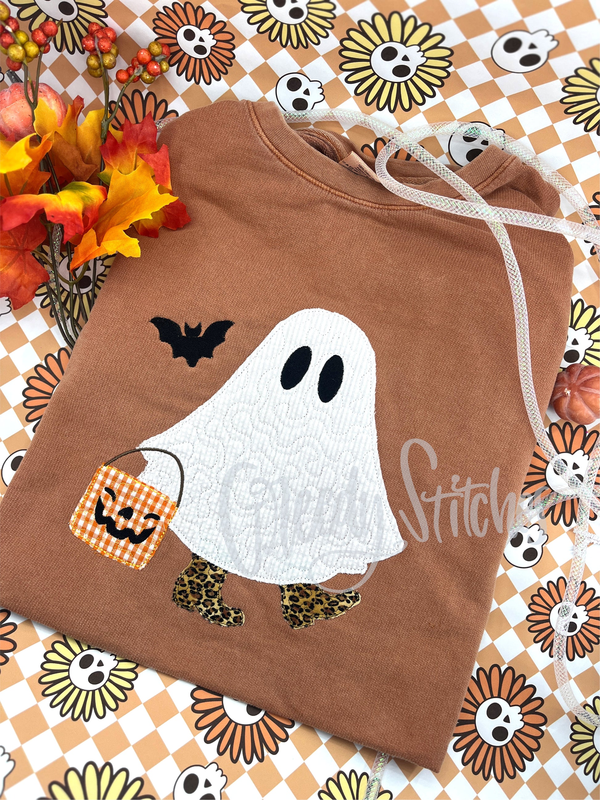 Western Trick or Treating Ghost Comfort Colors Long Sleeve T - Adult Sizes