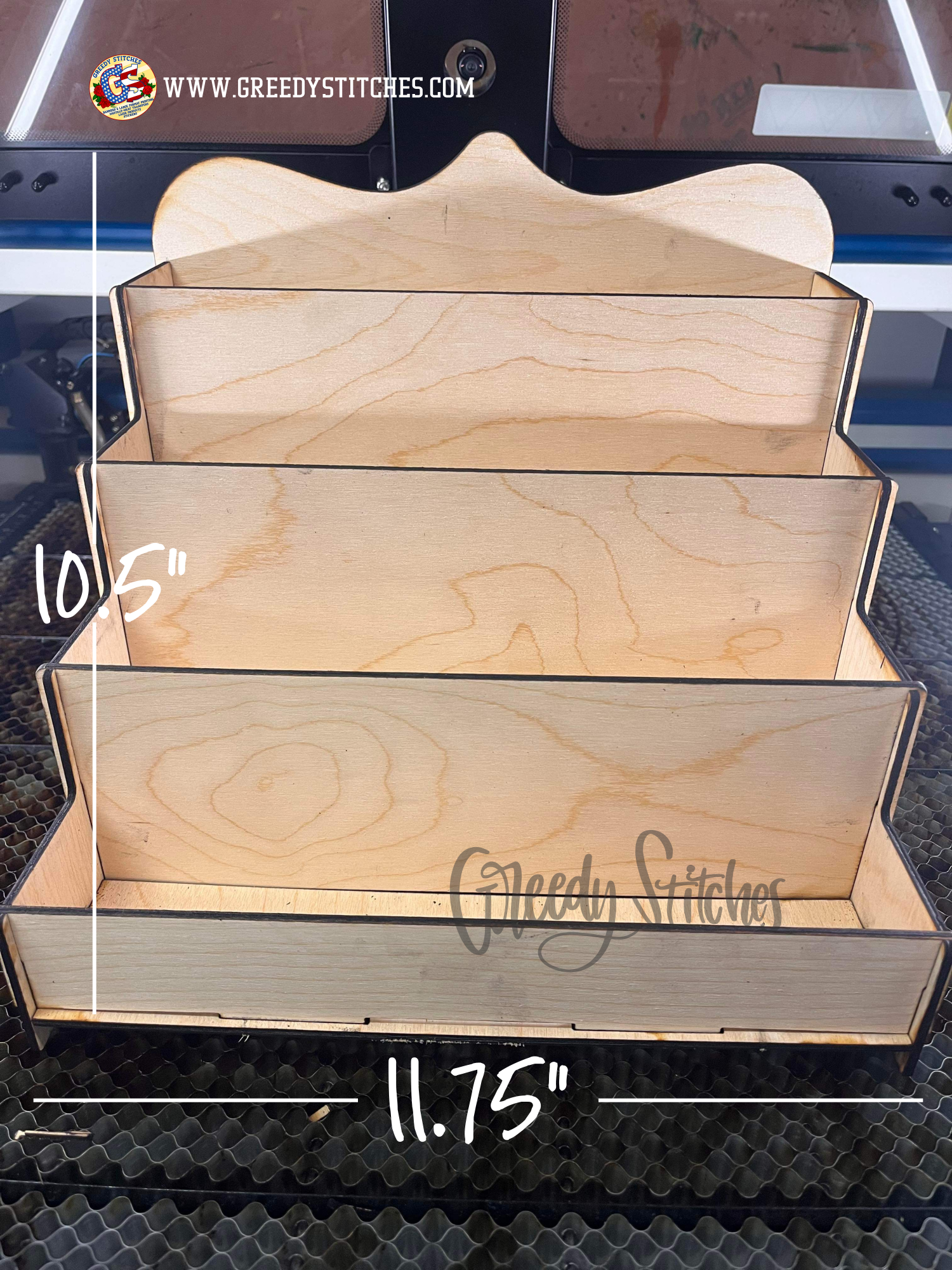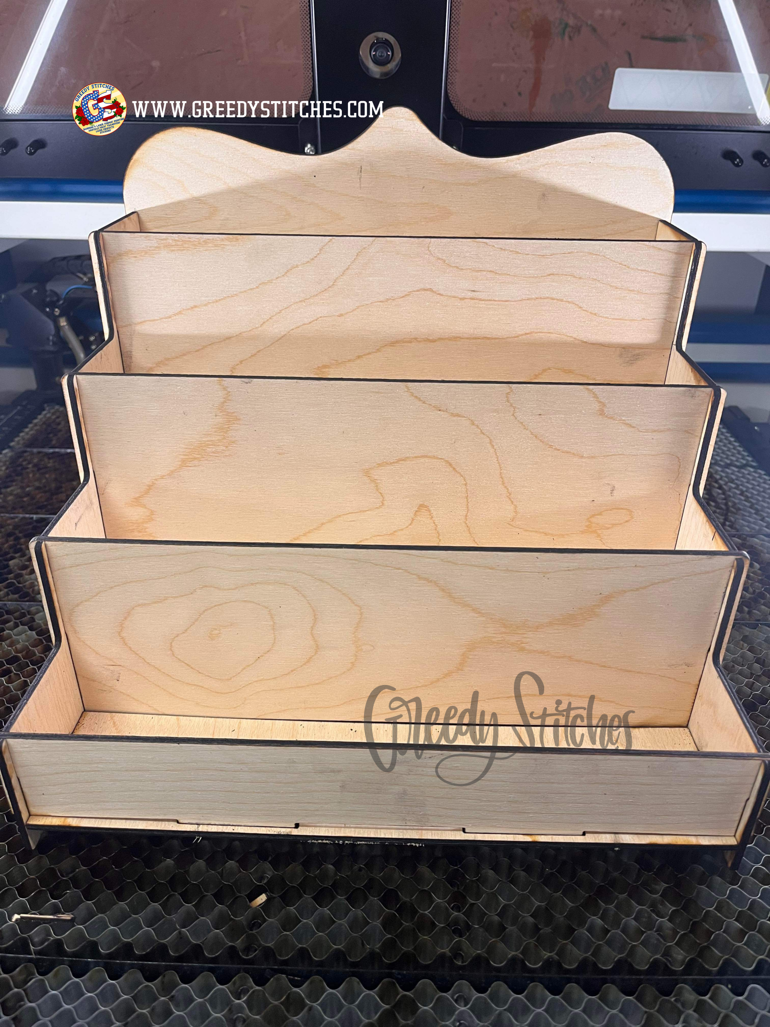 Our display stands are cut out of 1/8" thick birch wood, are lightweight, yet durable. These are great counter displays for wax melts, jewelry, ornaments, and more.